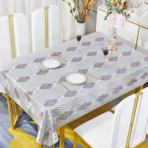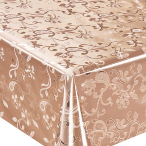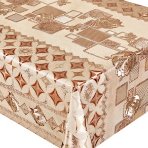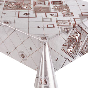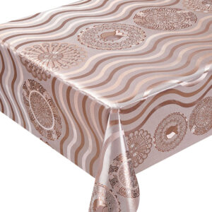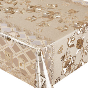 Елегантна та практична клейонка на тканинній основі з вишуканим золотистим та срібним відтінком стане чудовим доповненням вашого інтер’єру. Завдяки щільній тканинній основі вона відрізняється міцністю та довговічністю, а гладке ПВХ-покриття захищає поверхню від вологи, плям і механічних пошкоджень.